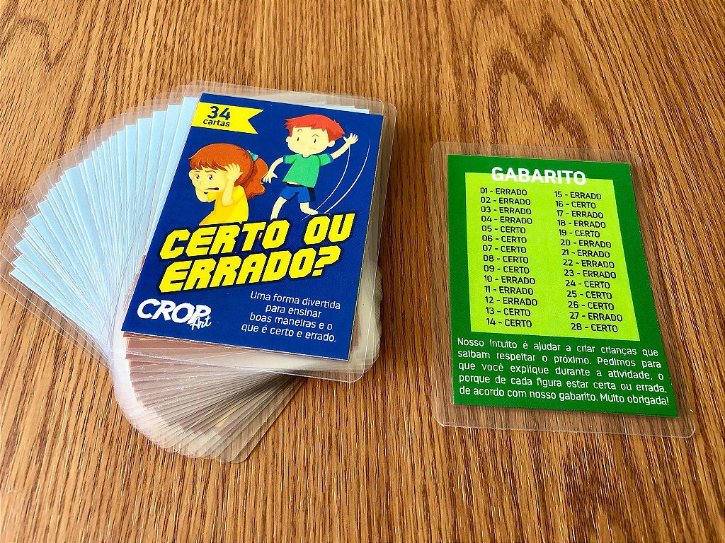 - 1 carta "CERTO" e 1 carta "ERRADO" para a criança indicar sua resposta.