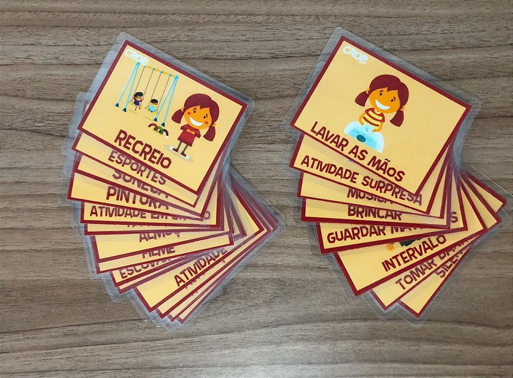 ✔ 22 cartas ilustradas com atividades escolares, como recreio, escovar os dentes, pintura, esportes e avaliação.