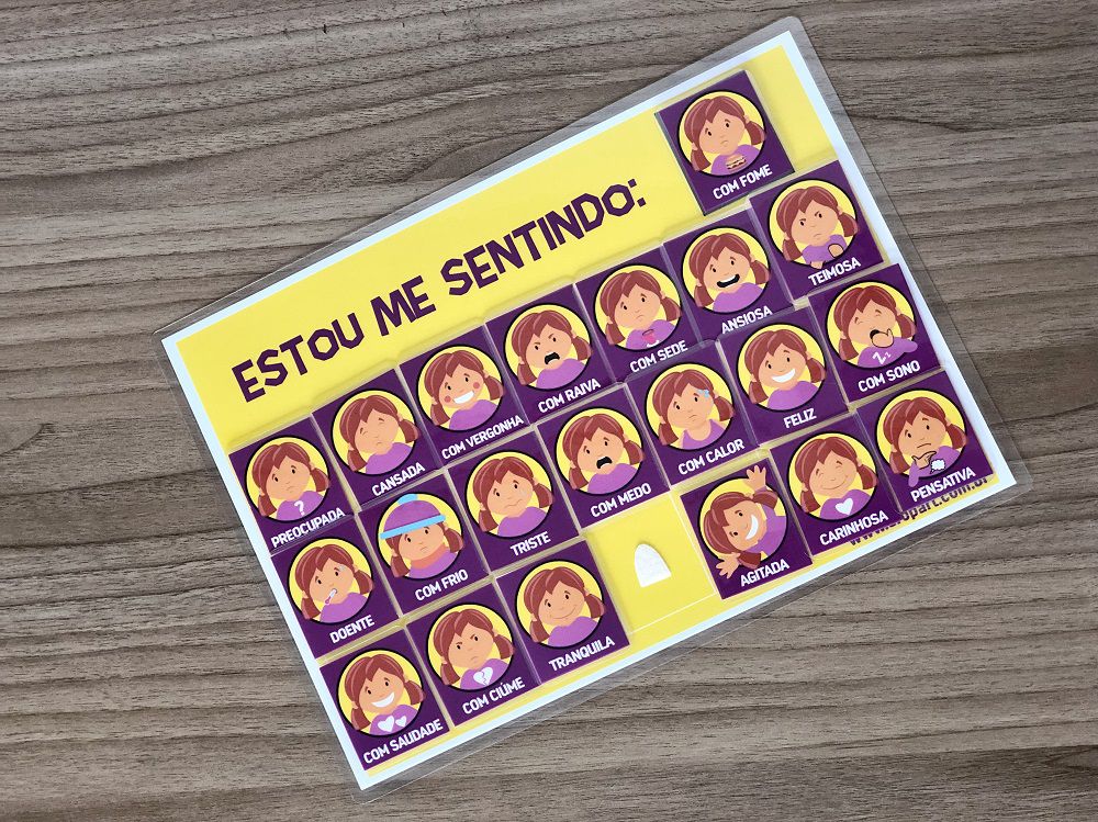 ✔ 21 imagens representando emoções, como feliz, triste, ansiosa, com sono, com medo, com vergonha, com raiva e muitas outras.