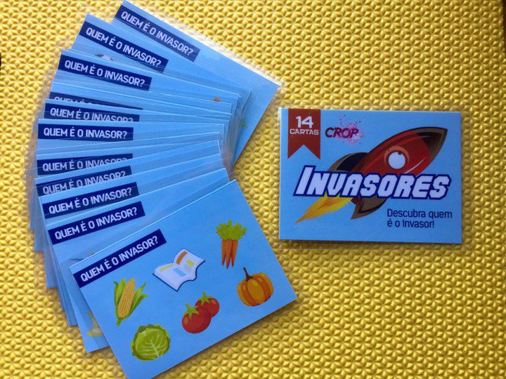 O Quem é o Invasor? é um joguinho educativo e interativo, onde a criança deve analisar as imagens em cada carta e identificar o elemento que não pertence àquela categoria.