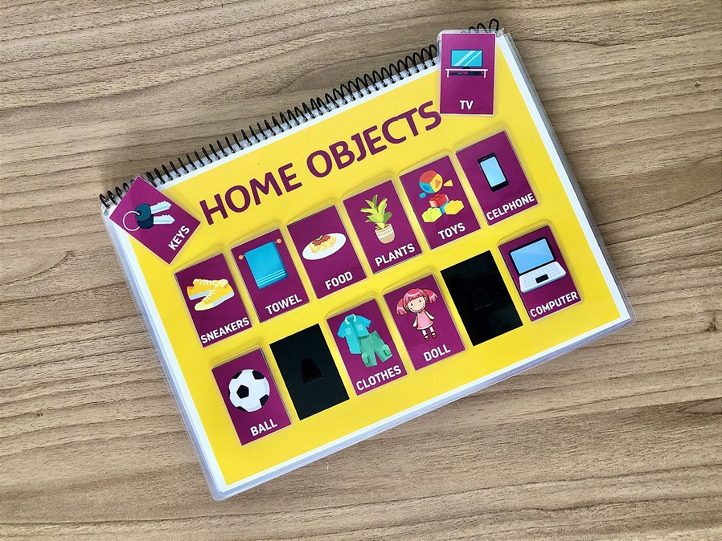 1️⃣ Misture as plaquinhas de duas em duas páginas e peça para a criança associar as palavras às imagens.