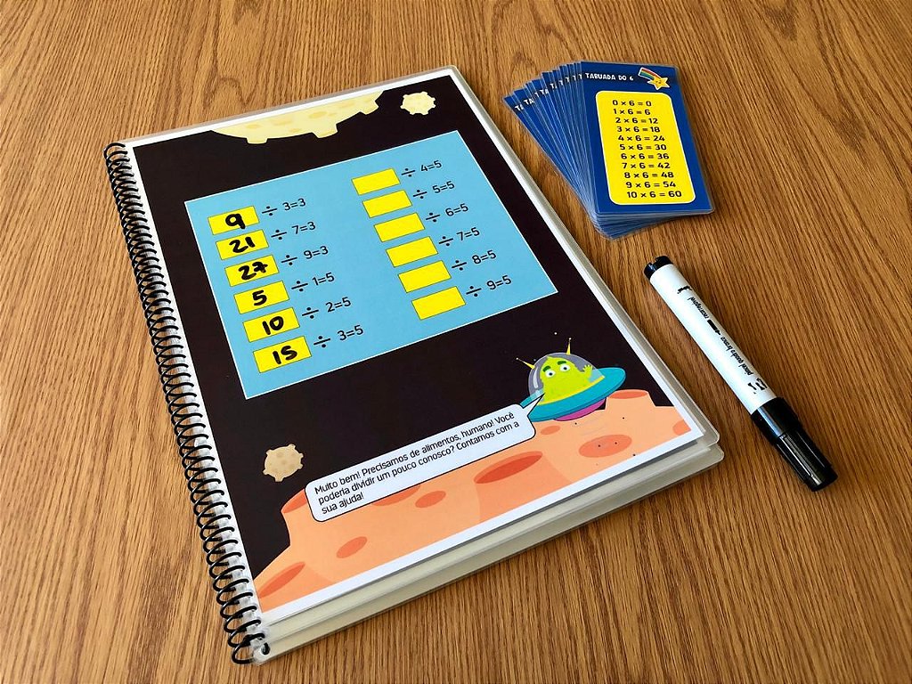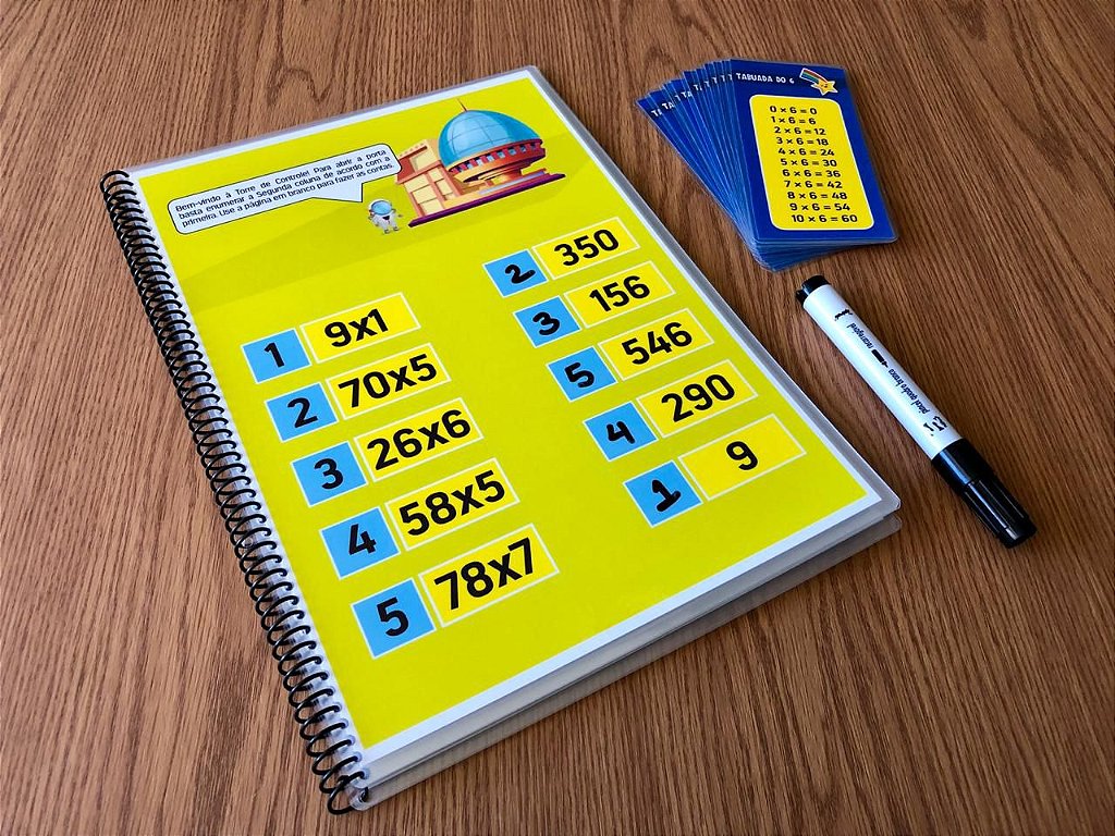 ✅ Proporcionar um aprendizado interativo, utilizando 10 cartelas de tabuada e canetinha apaga fácil para praticar quantas vezes quiser.