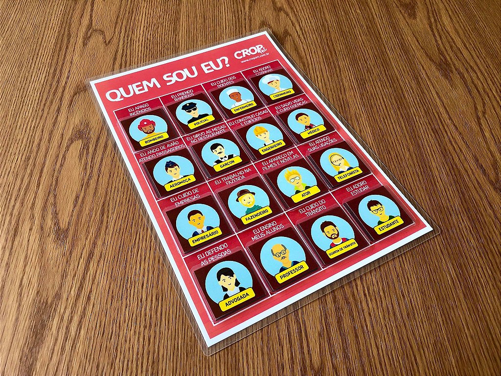 A Placa Quem Sou Eu? - Profissões é um recurso educativo interativo que ensina as crianças a identificarem diferentes profissões, associando cada uma ao seu contexto profissional.
