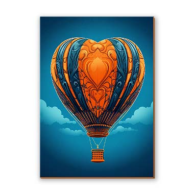 Apresentamos o quadro "Coração Autista: Viagem nas Alturas", uma representação artística que capta a essência da jornada autista através de cores vibrantes e simbolismo afetuoso. A imagem central deste quadro é um balão de ar quente em formato de coração, pintado em tons enérgicos de azul e laranja, que se destaca em um céu de possibilidades infinitas.