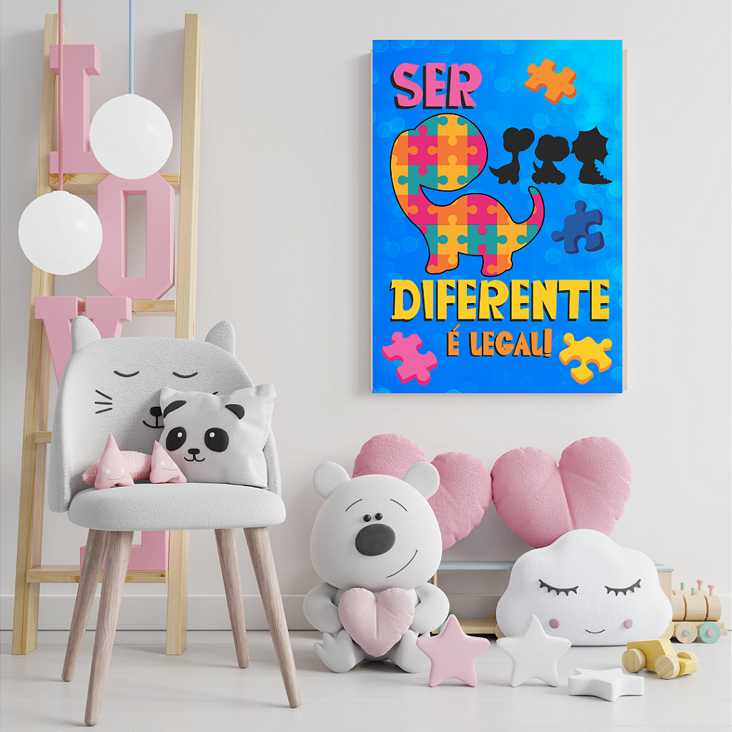 Este quadro é uma expressão artística que encoraja a valorização das diferenças e a autoaceitação, sendo um excelente complemento para qualquer ambiente infantil, como quartos, salas de estudo ou espaços de brincar. A mensagem "Ser Diferente é Legal!" é um lembrete positivo para crianças e adultos, promovendo um diálogo sobre diversidade e inclusão desde cedo.