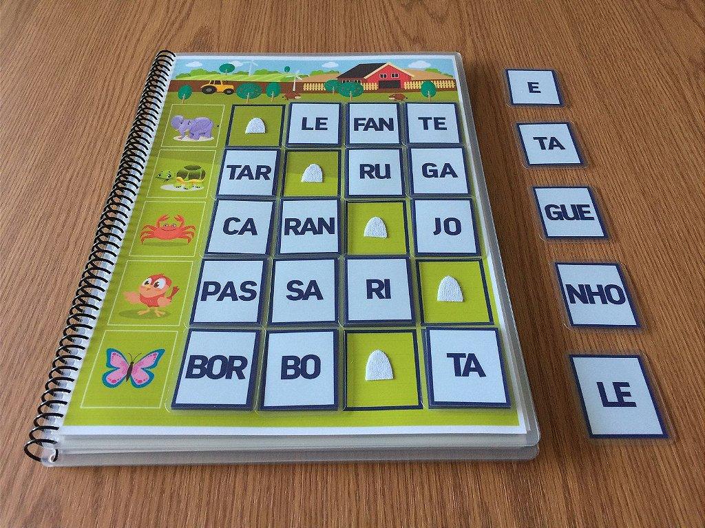 ✔ 45 peças interativas, auxiliando na separação das sílabas de 40 animais.