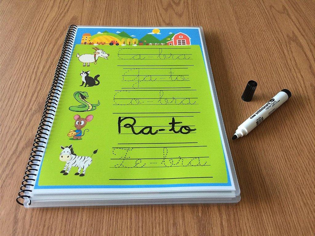Além disso, acompanha uma canetinha de quadro branco, permitindo que a atividade seja repetida quantas vezes forem necessárias, tornando o aprendizado dinâmico e contínuo.